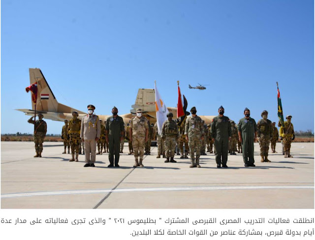 Ξεκίνησαν οι δραστηριότητες της κοινής αιγυπτιακής-κυπριακής εκπαιδευτικής άσκησης «Πτολεμαίος 2021», η οποία θα πραγματοποιηθεί για αρκετές ημέρες στην Κυπριακή Πολιτεία, με τη συμμετοχή στοιχείων των ειδικών δυνάμεων και των δύο χωρών, αναφέρει το αιγυπτιακό υπουργείο Άμυνας στην ηλεκτρονική σελίδα του.