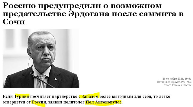 Εάν η Τουρκία θεωρήσει τη συνεργασία με τη Δύση πιο επωφελής για τον εαυτό της, θα γυρίσει εύκολα την πλάτη της στη Ρωσία, δήλωσε ο πολιτικός αναλυτής Πολ Αντωνόπουλος.