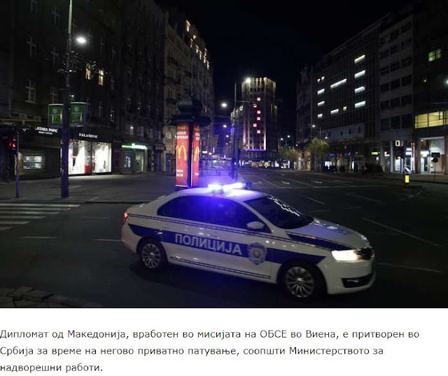 «Το Υπουργείο Εξωτερικών της Δημοκρατίας της Βόρειας Μακεδονίας επιβεβαιώνει ότι ένας υπάλληλος του Υπουργείου, ο οποίος αποστέλλεται αυτή τη στιγμή στην αποστολή του ΟΑΣΕ στη Βιέννη, συνελήφθη στη Δημοκρατία της Σερβίας στις 27 Αυγούστου 2021, για τον οποίο το Υπουργείο Εξωτερικών της Δημοκρατίας της Σερβίας ανέφεραν επίσημα στην Πρεσβεία της Βόρειας Μακεδονίας στο Βελιγράδι.