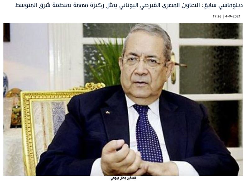 Ο πρέσβης Γκαμάλ Μπαγιούμι, πρώην βοηθός υπουργού Εξωτερικών, δήλωσε ότι η σύνοδος Αιγύπτου-Κύπρου, που φιλοξενήθηκε στο Κάιρο τις τελευταίες ώρες, αποσκοπεί κυρίως στην ολοκλήρωση της κοινής πολιτικής συνεργασίας Αιγύπτου-Κύπρου-Ελλάδας, η οποία μέχρι στιγμής είχε ως αποτέλεσμα τη δημιουργία του Φόρουμ Φυσικού Αερίου Ανατολικής Μεσογείου.