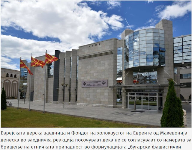 Αυτό σημαίνει ότι αντί να διαγραφούν ο όρος «Βούλγαρος»,  να προστεθούν οι όροι «η τότε κυβέρνηση» και οποιαδήποτε διατύπωση των γεγονότων του Β 'Παγκοσμίου Πολέμου που σχετίζεται με τον Βούλγαρο κατακτητή να καταγράφεται ως «οι τότε βουλγαρικές φασιστικές αρχές κατοχής» , διατυπώνει τη θέση η Εβραϊκή Θρησκευτική Κοινότητα και το Ταμείο για το Ολοκαύτωμα των Εβραίων στη Βόρεια Μακεδονία.
