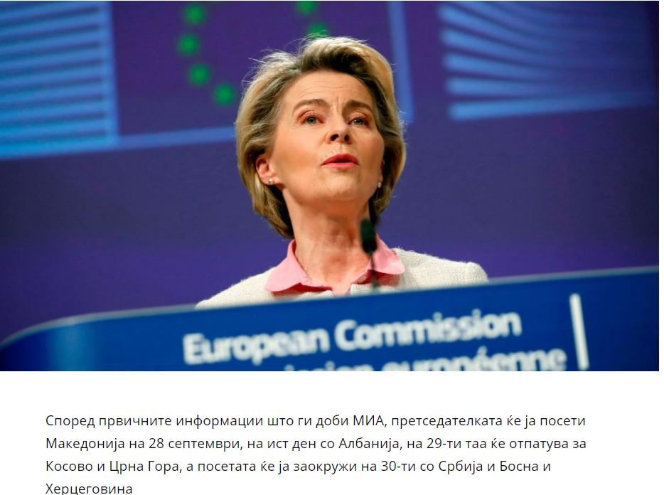 Η Ευρωπαϊκή Επιτροπή επιβεβαίωσε ότι η Πρόεδρος θα επισκεφθεί και τις έξι χώρες της περιοχής, συμπεριλαμβανομένης της Βόρειας Μακεδονίας.