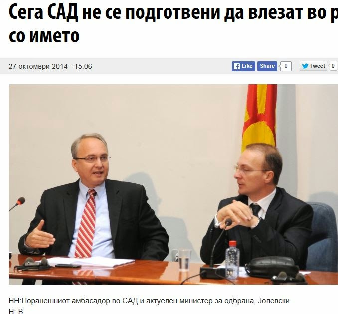 «Τώρα οι ΗΠΑ δεν είναι διατεθειμένες να εμπλακούν στη διαμάχη του ονόματος», είπε ο Ζόραν Γιολέφσκι- σύμφωνα με δημοσίευμα της εφημερίδας ‘Βέτσερ’