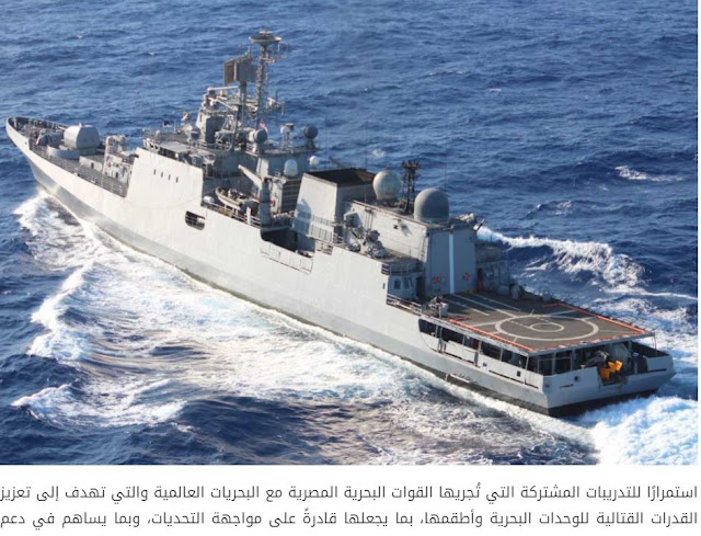 Στη συνέχεια των κοινών ασκήσεων που πραγματοποίησαν οι Αιγυπτιακές Ναυτικές Δυνάμεις με τις παγκόσμιες ναυτικές δυνάμεις, οι οποίες στοχεύουν στην ενίσχυση των μαχητικών δυνατοτήτων των μονάδων και των πληρωμάτων τους, καθιστώντας τις ικανές να αντιμετωπίσουν προκλήσεις, πραγματοποίησαν ναυτική άσκηση με τη συμμετοχή της αιγυπτιακής φρεγάτας (Αλεξάνδρεια) και της