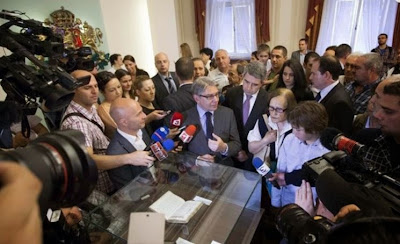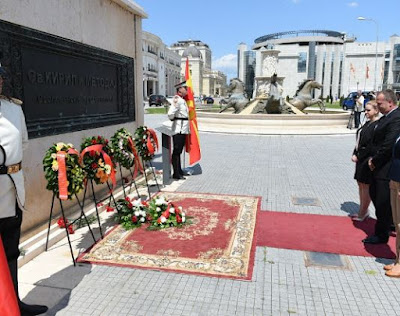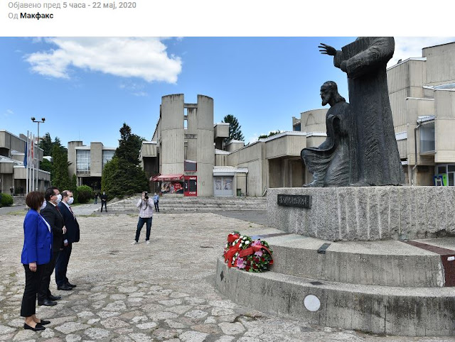Ο δήμαρχος Σκοπίων Κότσε Τραϊανόφσκι και αντιπροσωπεία του Δημοτικού Συμβουλίου κατέθεσε σήμερα (χθες) στεφάνι λουλουδιών στο μνημείο των Διαφωτιστών των Σλάβων, των Θεσσαλονικέων Κυρίλλου και Μεθοδίου, με την ευκαιρία της εορτής της 24ης Μαΐου- "Ημέρα των Διαφωτιστών των Σλάβων" .
