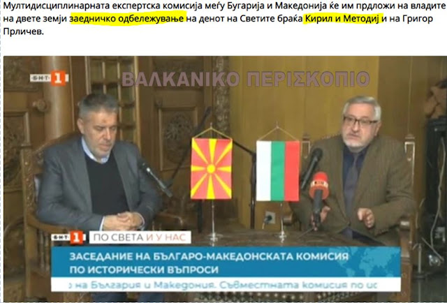 Η βουλγαρική ‘Bgnes’, αναφερόμενη σε δήλωση του συμπροέδρου της Επιτροπής από τη βουλγαρική πλευρά, Άντερ Ντιμιτρόφ, ανακοίνωσε ότι οι δύο πλευρές συμφώνησαν για τον κοινό εορτασμό των Αγίων αδελφών Κύριλλο και Μεθόδιο.