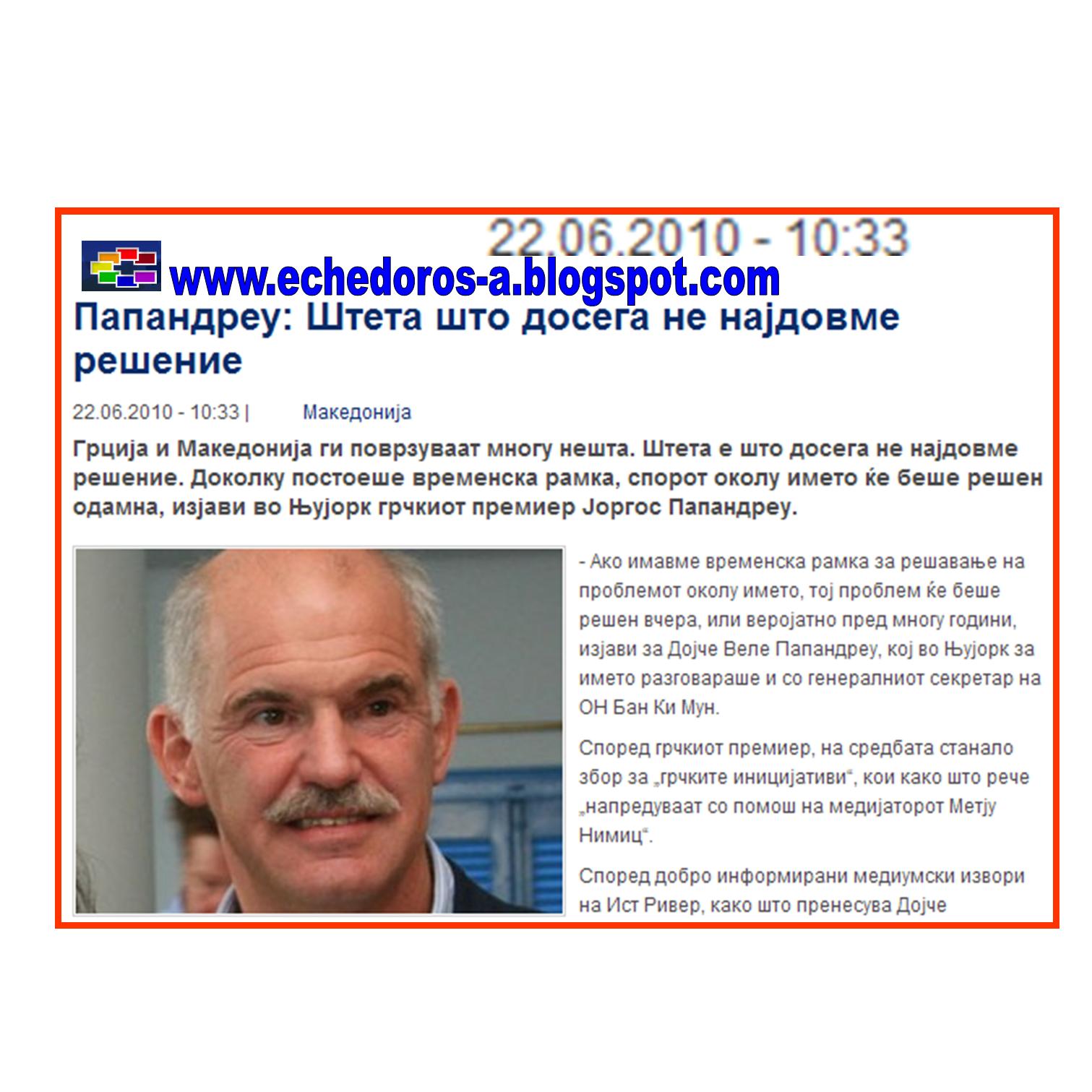 Ο Έλληνας πρωθυπουργός, Γιώργος Παπανδρέου, σχετικά με το διαφορά της Ελλάδας με την πΓΔΜ, δήλωσε στην 'Deutsche Welle' ότι «η πραγματική απώλεια είναι ότι δεν έχει βρεθεί ακόμη μια λύση στο ζήτημα της ονομασίας».