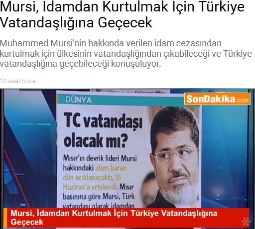 Σύμφωνα με τούρκικο δημοσίευμα, η θανατική ποινή που επιβλήθηκε στον Μοχάμεντ Μόρσι, πρώην πρόεδρο της Αιγύπτου, θα μπορούσε να ματαιωθεί εάν λάμβανε την τουρκική υπηκοότητα.