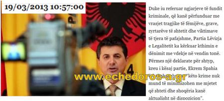 Ο πρόεδρος του Κόμματος του Κινήματος της Νομιμότητας – [Partia Lëvizja e Legalitetit], Εκρέμ Σπαχία αναφερόμενος στις πρόσφατες εγκληματικές ενέργειες που είχαν ως αποτέλεσμα τις δολοφονίες παιδιών, γυναικών, κρατικών αξιωματούχων και άλλων αθώων θυμάτων, απαίτησε την επιστροφή της θανατικής ποινής στην Αλβανία.