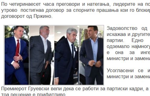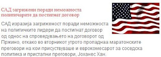 Οι πρέσβεις της Ευρωπαϊκής Ένωσης και των Ηνωμένων Πολιτειών της Αμερικής, Άιβο Όραβ και Τζες Μπέιλι αντίστοιχα, είχαν σήμερα ξεχωριστές συναντήσεις με εκπροσώπων των μεγάλων κομμάτων, τα οποία είχαν υπογράψει την περυσινή συμφωνία για την πολιτική διευθέτηση της χώρας.