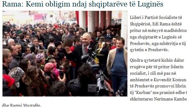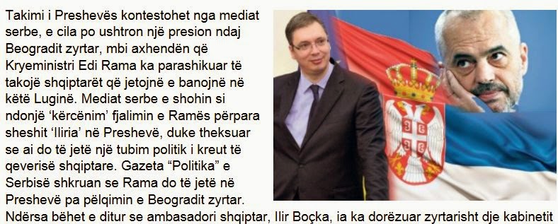 Σε Συνέλευση του Αλβανικού Συμβουλίου της Κοιλάδας του Πρέσεβο, στην νότιο Σερβία, αποφάσισε κατά της απομάκρυνσης του μνημείου του Αλβανικού Απελευθερωτικού Μετώπου και δήλωσαν να ενταχθεί η περιοχή τους στις συνομιλίες μεταξύ της Πρίστινας και του Βελιγραδίου.