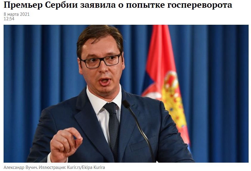 Η πρωθυπουργός της Σερβίας Άνα Μπρανάμπιτς θεωρεί ότι οι τηλεφωνικές υποκλοπές του προέδρου Αλεξάνταρ Βούτσιτς ήταν απόπειρα πραξικοπήματος. Η Μπρανάμπιτς το ανακοίνωσε στο TV Pink.