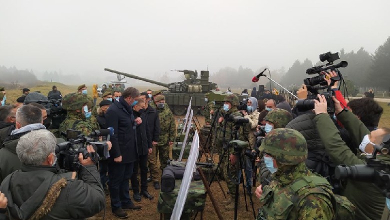 Ο πρόεδρος της Σερβίας, Αλεξάνταρ Βούτσιτς, από το στρατόπεδο «Μίγια Στανιμίροβιτς» στη Νις, ευχαρίστησε τη Ρωσία και τον πρόεδρο της, Βλαντίμιρ Πούτιν, για τη δωρεά αρμάτων μάχης και τεθωρακισμένων οχημάτων.